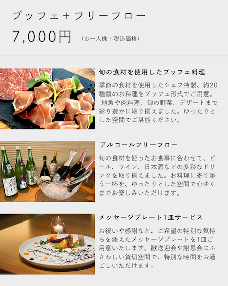 ・料金にはブッフェ料理と飲み放題が含まれます。
