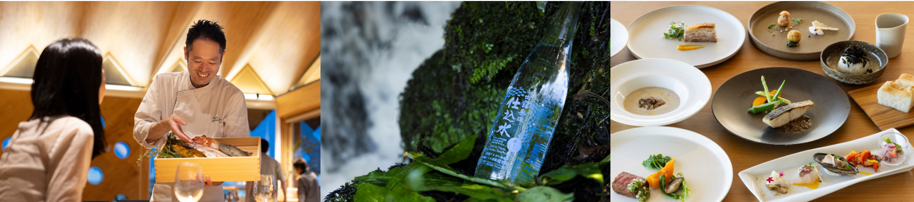 “つくる”ことから始まる食の営みは、レストランにおいて“料理として表現する”ことで体験へとつながります。当館では2025年10月よりディナーコースを刷新し、「水と米」にフォーカスした新たなガストロノミーの提供を開始しました。
